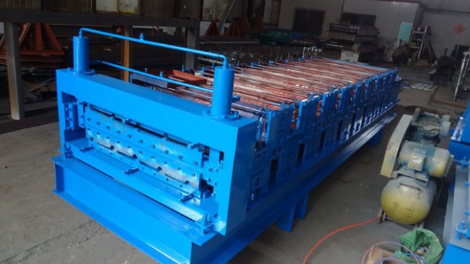雙層彩鋼瓦設備是將兩種型號結合在一起,結構合理、外形美觀具有節省占地空間、操作簡單等特點,上下層的型號可按客戶要求而定。 該機主要由進料導入平臺、鋼板成型自動剪切裝置、液壓系統、進口機芯電腦控制系統、高精度自動計量長度系統等組成。